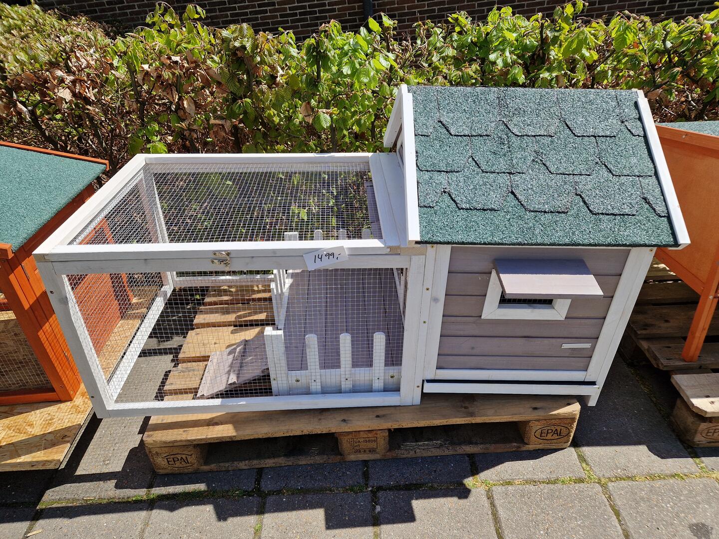 Dette er et charmerende og funktionelt hjem til dine kaniner. Den rummelige størrelse giver dine kaniner masser af plads til bevægelse og aktivitet. Buret er konstrueret med fokus på holdbarhed og kvalitet for at sikre et sikkert og komfortabelt miljø for dine kæledyr. Companion kaninburet er en ideel løsning for dem, der ønsker at give deres kaniner et hjem, der kombinerer funktionalitet med et attraktivt udseende i udendørs omgivelser.