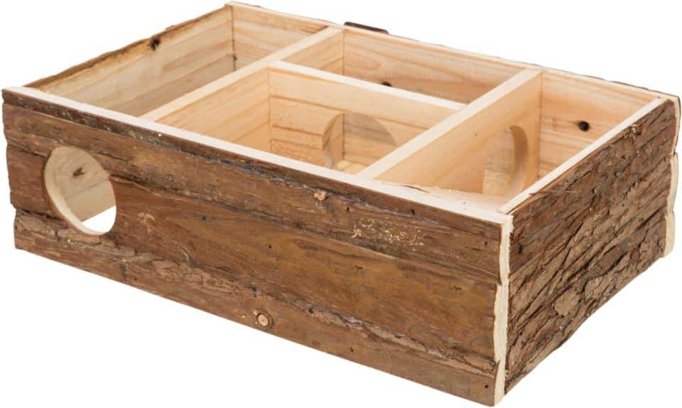 Dette lege- og sovehus til hamster er en multifunktionel oase med fire rum og en integreret rampe. To af rummene er mørklagte soverum, hver med en komfortabel bund. Det aftagelige tag gør rengøring nem og muliggør observation af dine kæledyr. Huset er lavet af nåletræ med bark, uden harpikskanaler, da harpiks kan være giftig. Træet undergår en omhyggelig tørreproces for at sikre, at det ikke frigiver harpiks. Limen, der anvendes, er ugiftig og består af en sikker kautsjuk- og celluloseblanding. Skab et trygt og stimulerende miljø for din hamster med dette omhyggeligt designede lege- og sovehus.
