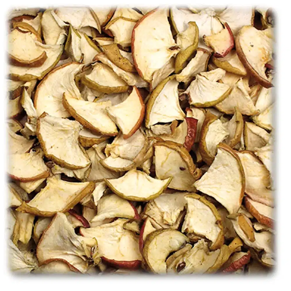 JR FARM Æbleskiver tørres skånsomt (uden tilsat konserveringsmidler som svovl) og pakkes omhyggeligt i hånden. På denne måde bevares en stor del af de naturlige vitaminer. Takket være den overskuelige størrelse på æblechipsene er de perfekte som belønning for at lære.