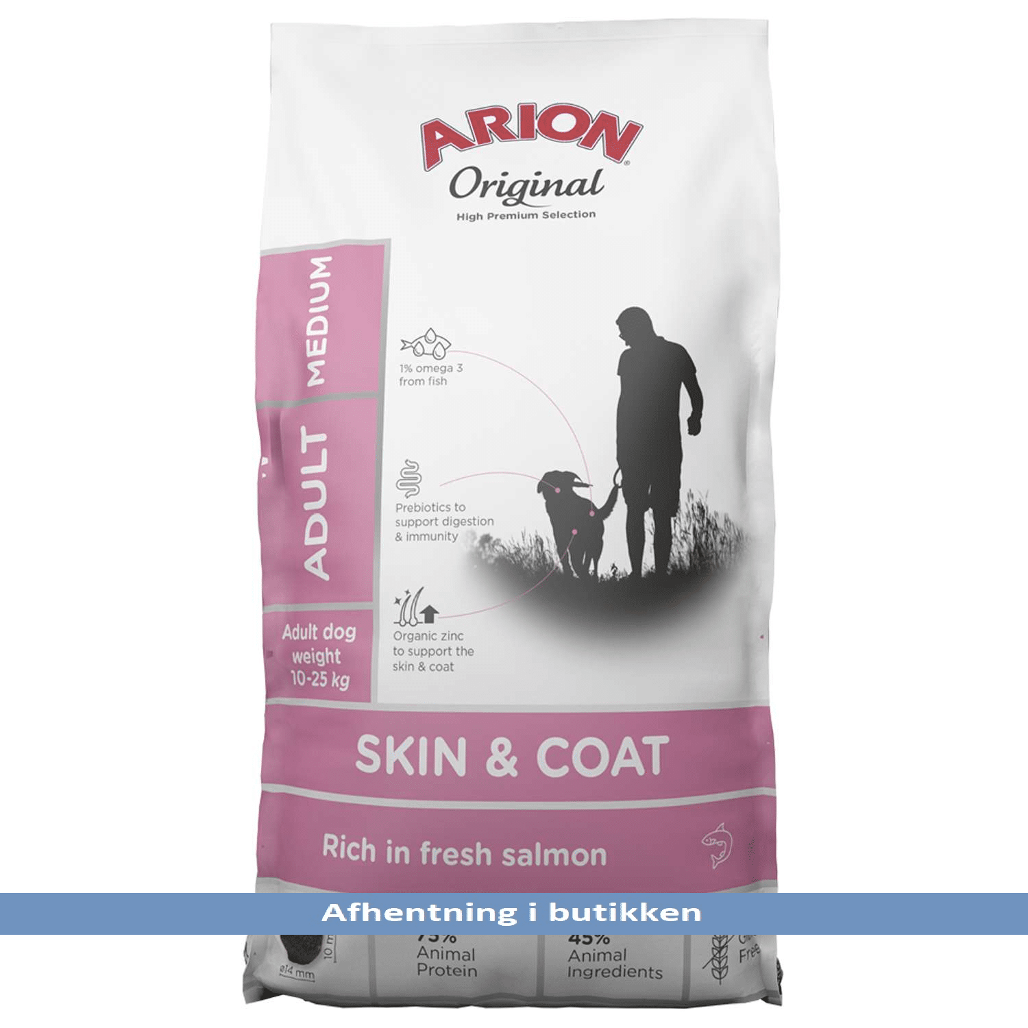 ARION Original Skin & Coat Medium er et fuldfoder til voksne hunde. Denne glutenfri sammensætning, baseret på fisk, indeholder en unik blanding af vildfangede fisk og skaldyr, og organisk zink til at støtte din hunds hud og pels.